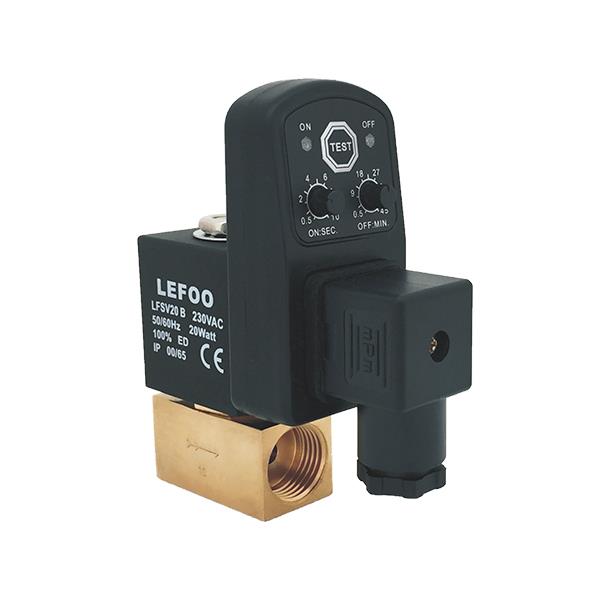 LFSV20-B電磁閥,是二通式常閉二位二通電磁閥。該閥利用線圈通電產(chǎn)生的電磁力來驅(qū)動(dòng)閥芯運(yùn)動(dòng),從而阻斷或流通管道中的介質(zhì),起到壓縮空氣冷凝水的定時(shí)自動(dòng)排放目的。主要應(yīng)用于過濾器、分離器、干燥機(jī)、儲(chǔ)氣罐、滴水腳等壓縮空氣系統(tǒng)部件,排放時(shí)間與間隔可根據(jù)不同需要進(jìn)行調(diào)節(jié)。
